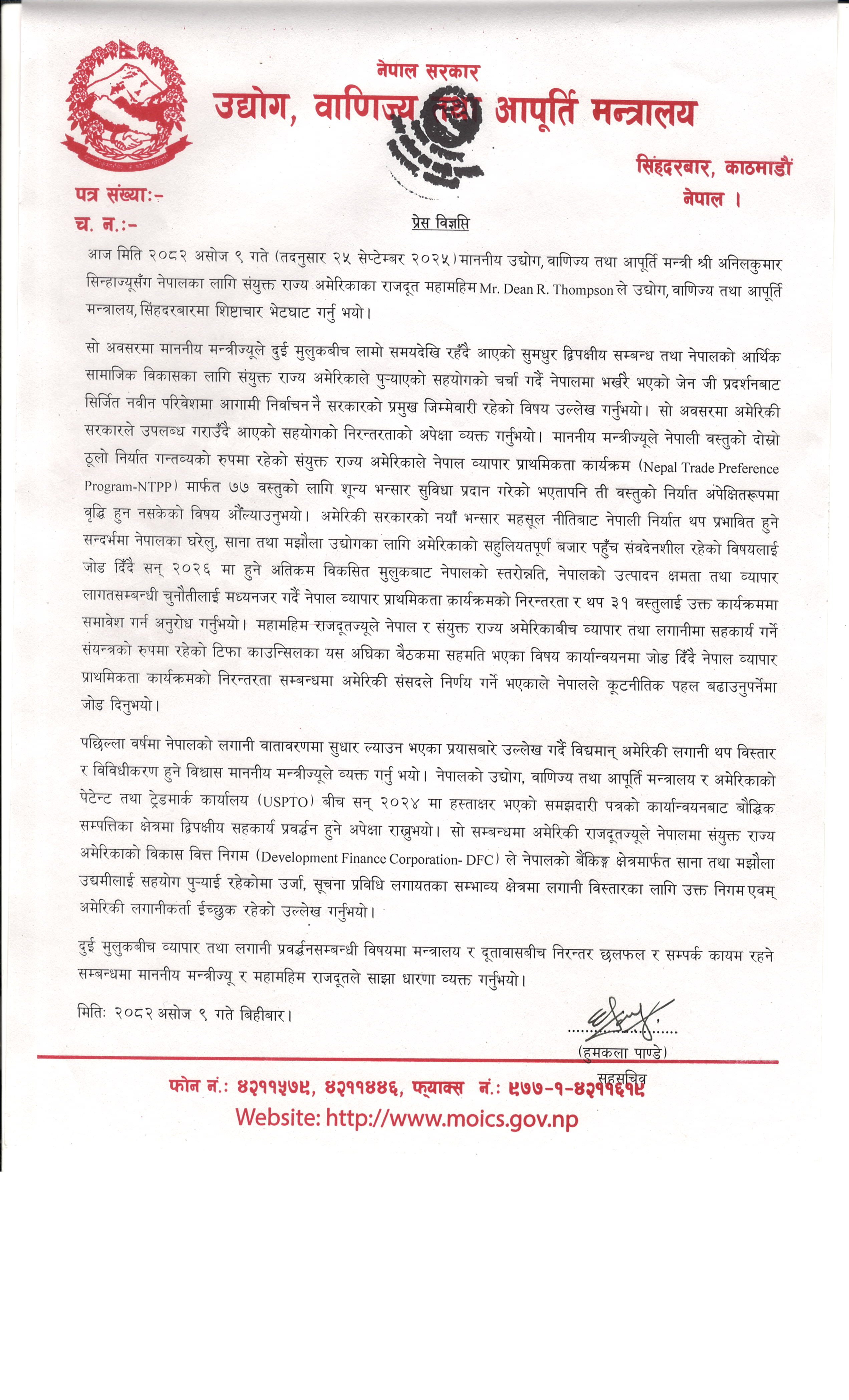 प्रेस विज्ञप्ति २०८२ भाद्र ३० गते