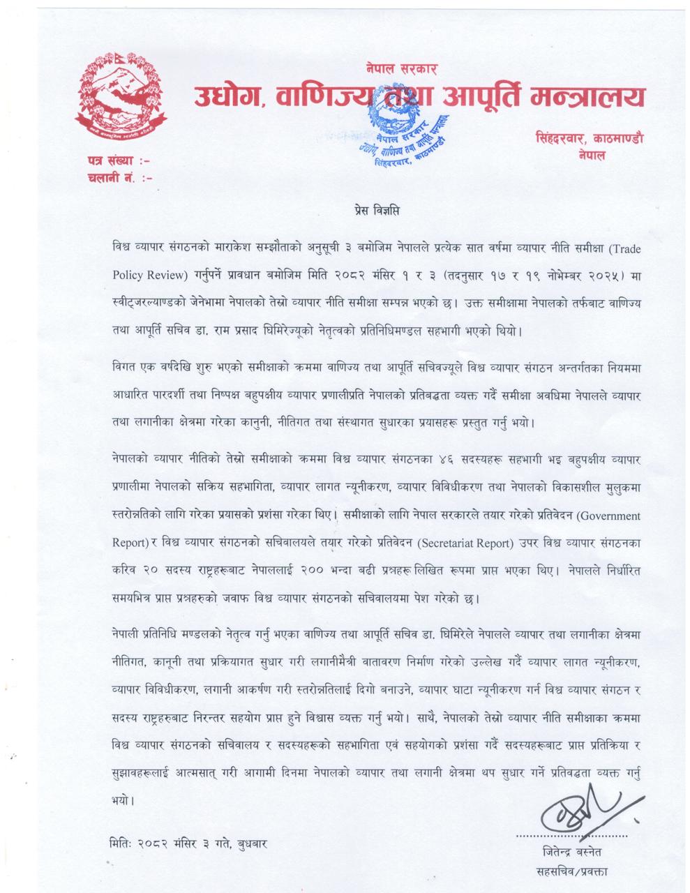 प्रेस विज्ञप्ति २०८२ कार्तिक २७ गते बिहीबार