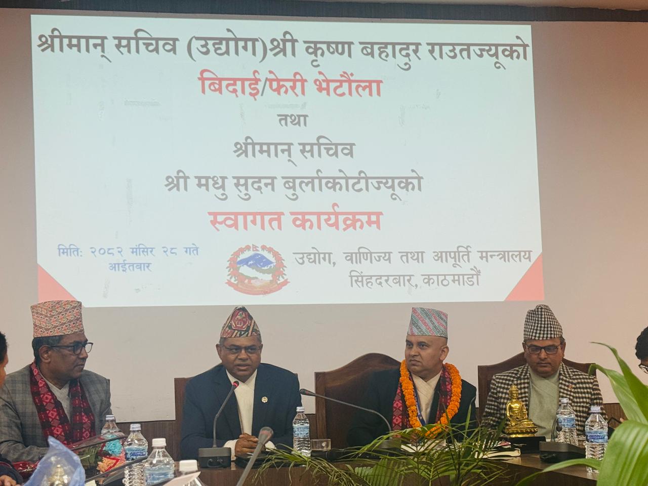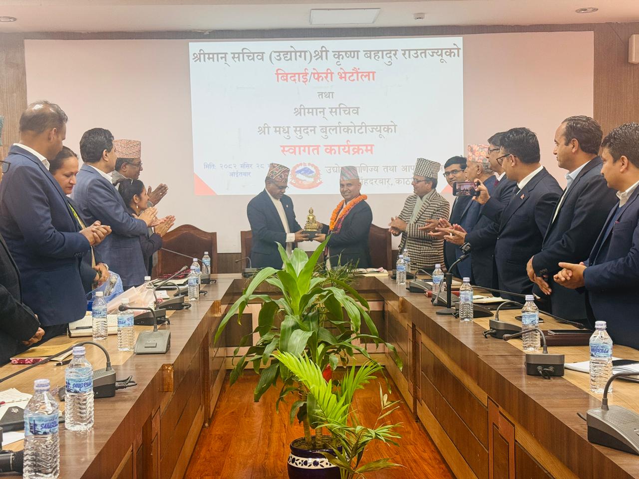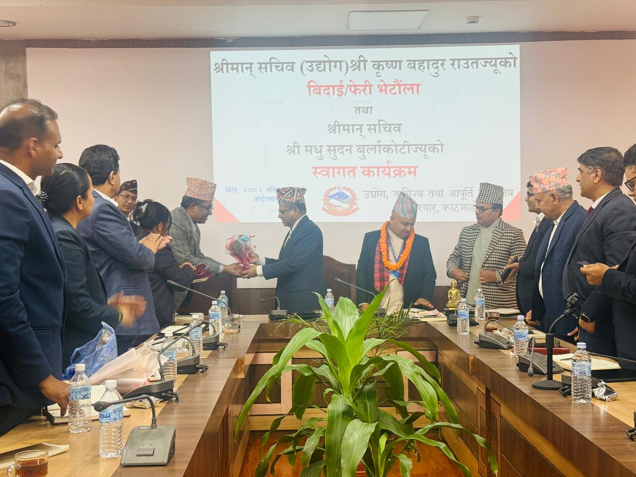 श्रीमान् सचिव गोविन्द बहादुर कार्कीज्यूको फेरी भेटौंला तथा श्रीमान सचिव (वाणिज्य तथा आपूर्ति) डा. रामप्रसाद घिमिरेज्यूको स्वागत कार्यक्रम